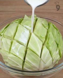 . Aggiungere il composto di carne e cavolo in una teglia.